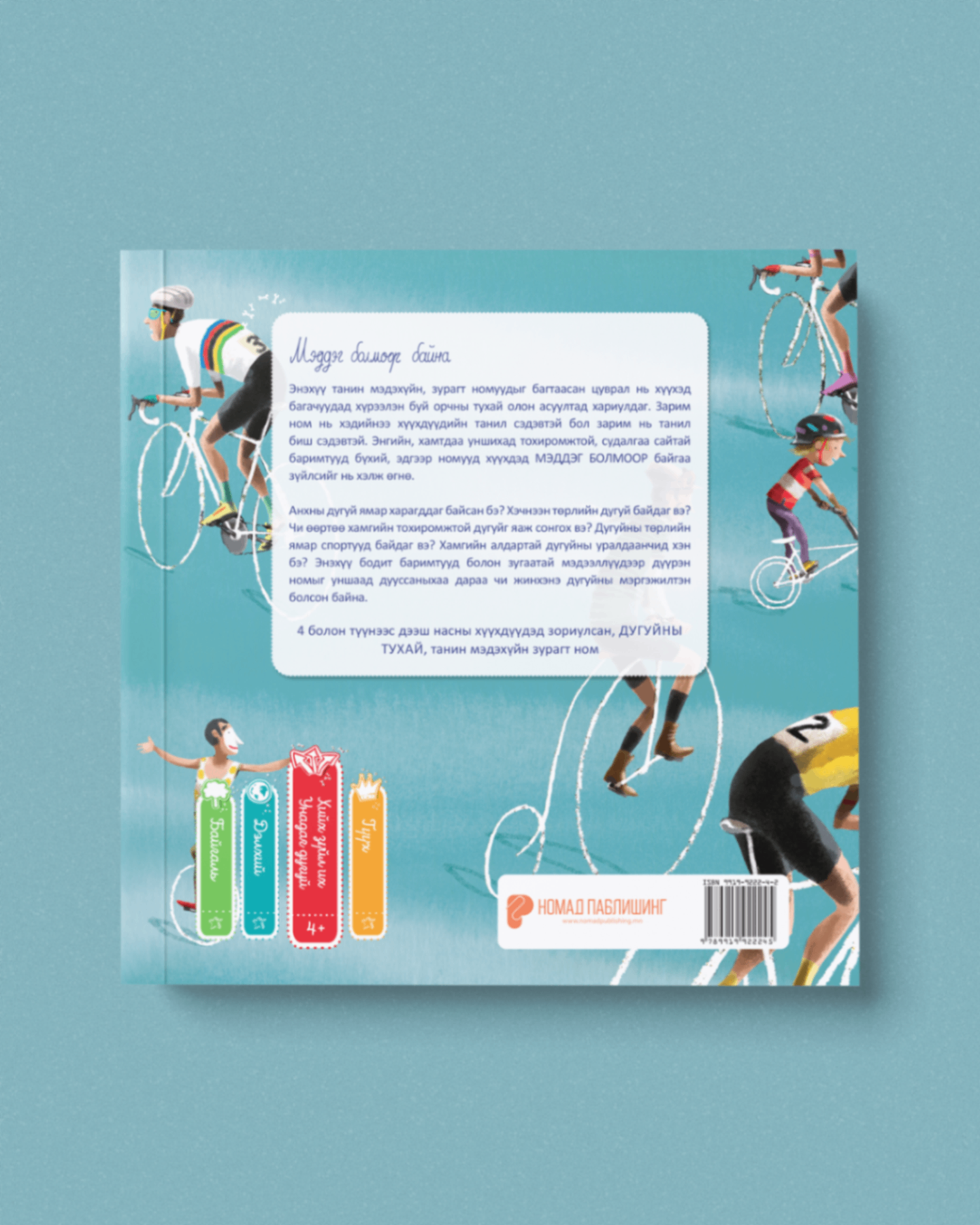 Хүүхдэд унадаг дугуйны талаар танилцуулсан, танин мэдэхүйн зурагт ном. Тус номд унадаг дугуйны гарал үүсэл, дугуйн спорт, дугуй унаж хийдэг ажил мэргэжлүүд зэрэг сонирхолтой баримтуудыг энгийн, ойлгомжтой хэллэгээр тайлбарлана. Та номын хуудаснуудыг эргүүлэнгээ, хүүхдээсээ “Унадаг дугуй ямар ямар эд ангиудаас бүтдэг вэ?”, “Дугуйн спортын хамгийн алдартай тамирчин хэн бэ?”, “Өөртөө тохирсон дугуйг хэрхэн сонгох вэ?” зэрэг сонирхолтой асуултуудыг асууж, хөгжилтэй бодлого, асуулт хариултын булан, амьдралд хэрэгтэй зөвлөгөө зэргийг хамтдаа уншин, мэдлэгийг нь хөнгөхөн байдлаар тэлэх боломжтой. Энэ ном таны хүүхдэд машин механизм, инженерийн мэдлэгийн анхан шатны ойлголтыг өгөх болно.
